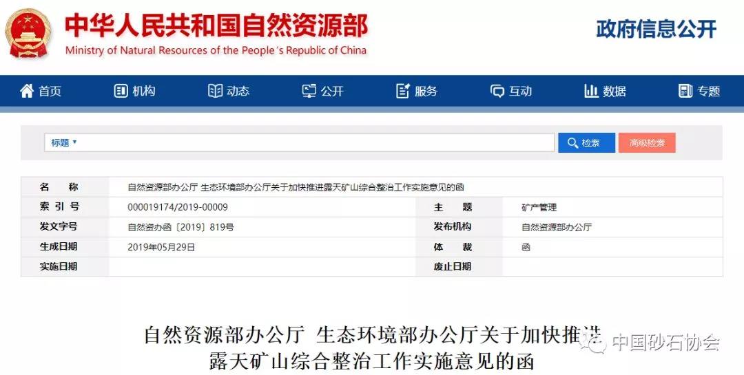自然资源部和生态环境部两部委发函要求,严格控制新建露天矿山建设项目,重点区域原则上禁止新建露天矿山建设项目。