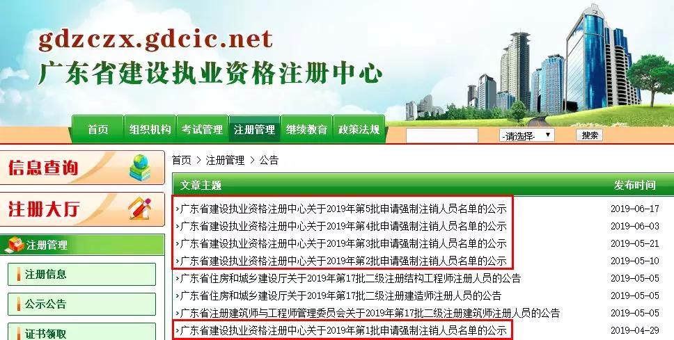 近日,广东省建设执业资格注册中心网站先后公布了2019年第4批和第5批申请强制注销人员名单,注销人数分别为237人、124人。涉及的证书依然主要是建造师。