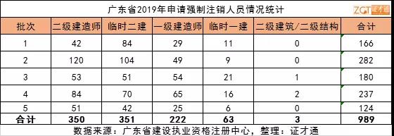 截至6月17日,广东省2019年申请强制注销人员共计989人,其中: