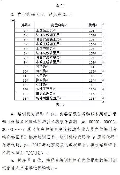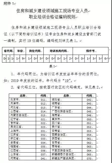 1.住房和城乡建设领域施工现场专业人员职业培训合格证编码规则