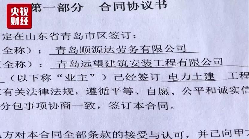 刘飞云介绍,该标段总承包方为中国葛洲坝集团电力有限责任公司,总承包方通过青岛永利捷电力工程有限公司、青岛顺源达劳务有限公司等层层分包,最终由他所在的青岛远望建筑安装工程有限公司实际施工。