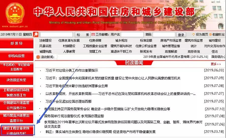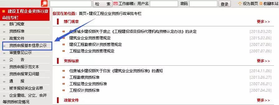 1、点击“住房城乡建设部网站主页→建设工程企业资质行政审批专栏→资质申报基本信息公示”进行查询。