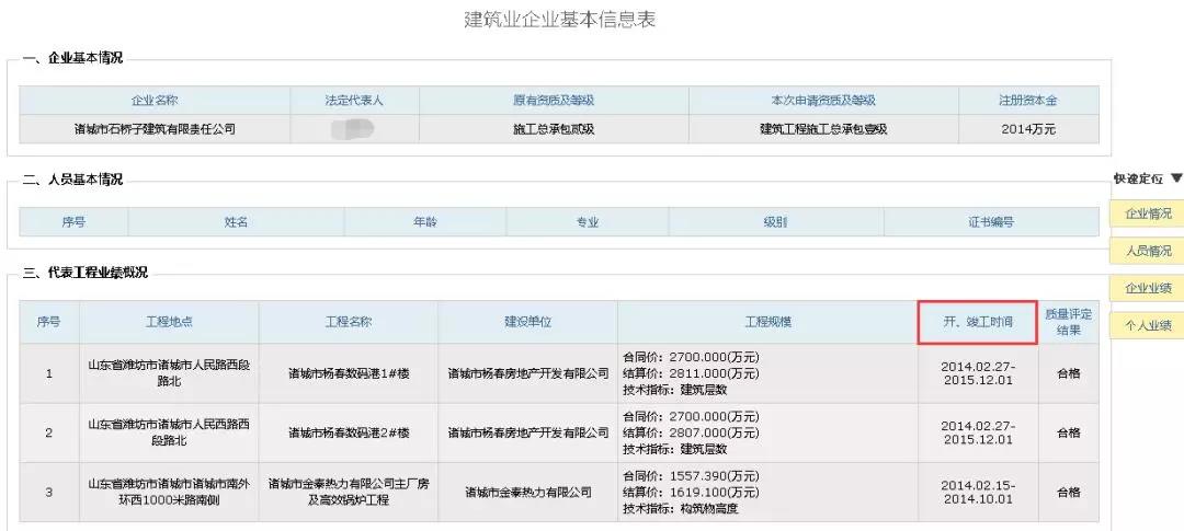 公示期间,企业申报材料中的人员、代表工程业绩等详细情况,全网公示、均可查询。