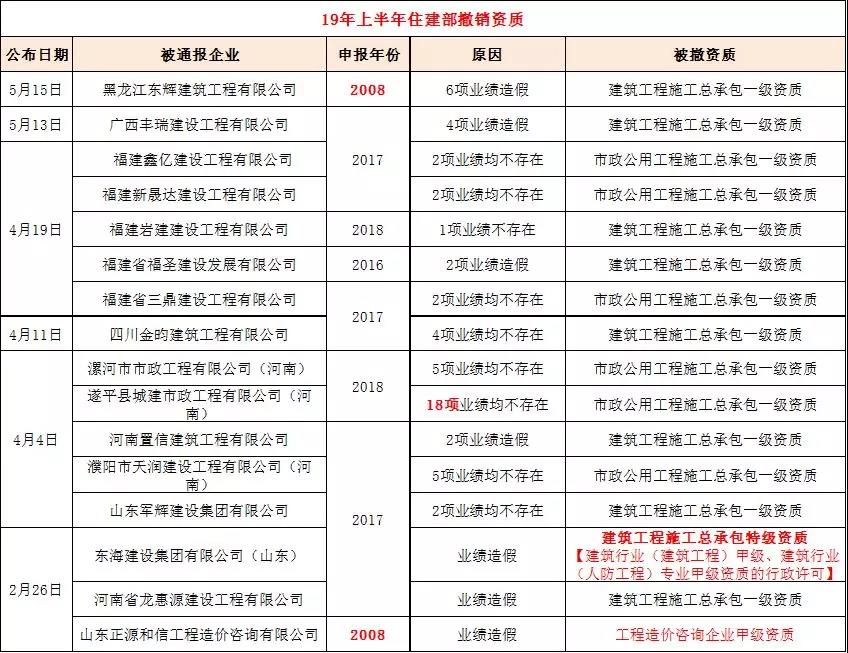 仅2019年上半年,就有16家企业的18项资质被住建部撤销,虚假业绩多达58项。