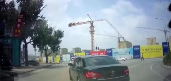 从视频看到:塔机像折纸一样从两端折断后坠落倒地,这座十多米高的塔机吊臂先发生折断,向下倒塌,接着整个塔机主结构也被拽倒。