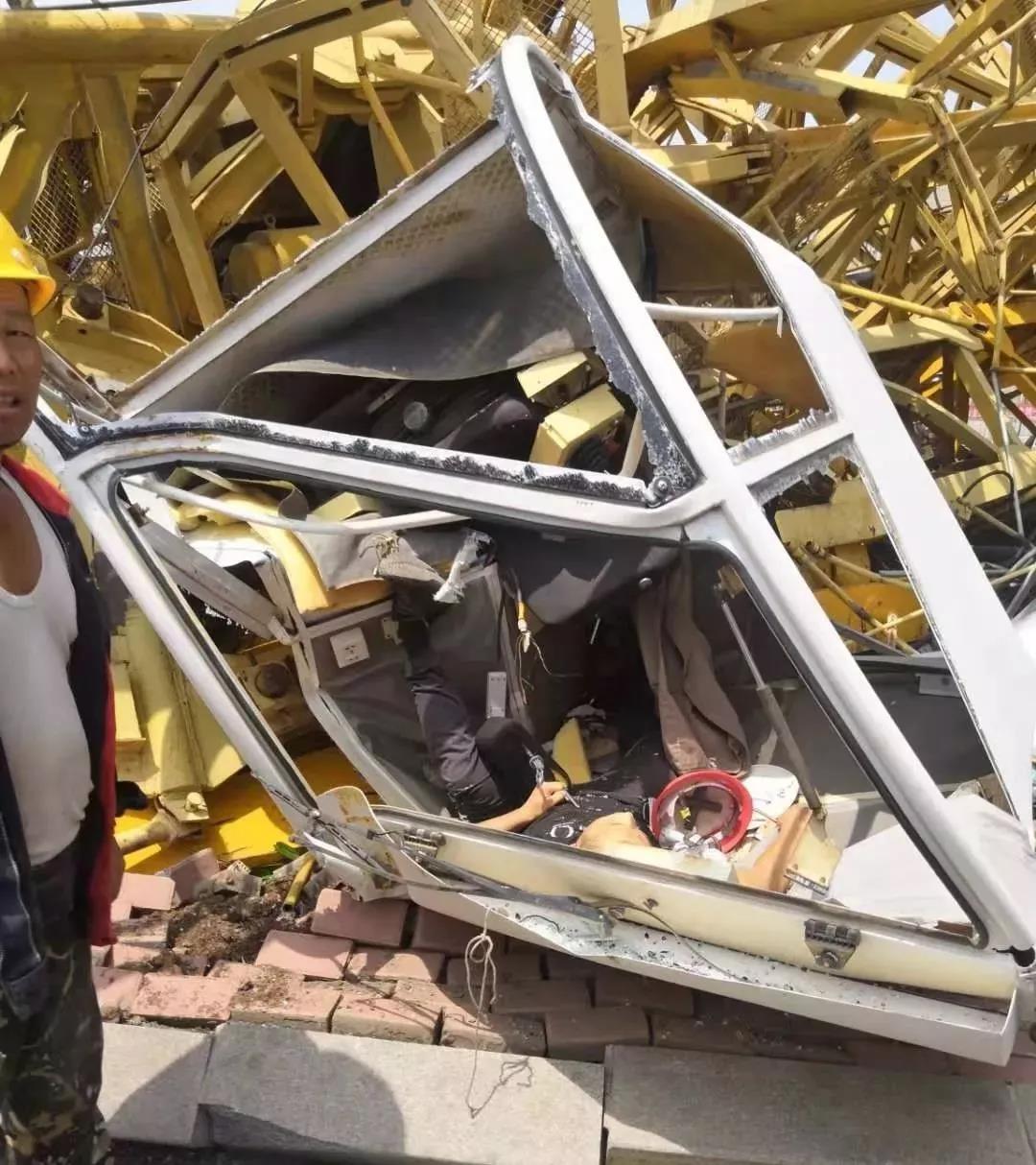 2019年6月1日,四川一在建工地塔吊发生倒塌事故,司机被悬高空!
