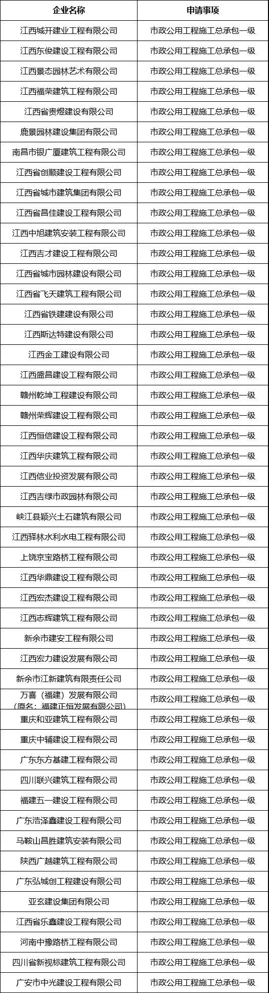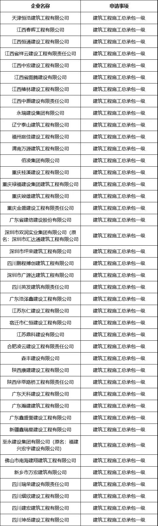 建筑工程施工总承包一级资质,42家