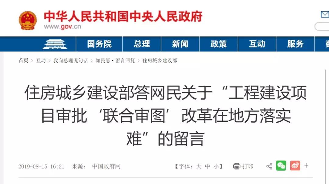 来自河北唐山的网民“lylseff”(手机尾号9509)说:总理,您好。我是一名基层的图纸审查企业管理人员。目前行政审批制度改革正在积极推进,国务院办公厅《关于全面开展工程建设项目审批制度改革的实施意见》(国办发〔2019〕11号)中,二(八)条明确指出:制定施工图设计文件联合审查和联合竣工验收管理办法。将消防、人防、技防等技术审查并入施工图设计文件审查,相关部门不再进行技术审查。