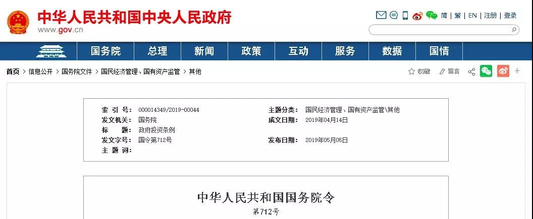 2019年5月5日,国务院公布《政府投资条例》(以下简称《条例》),自7月1日起施行。