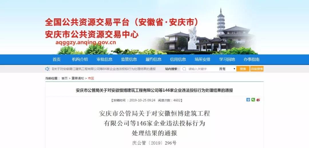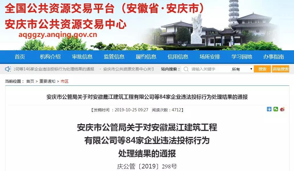 无独有偶,安徽省安庆市公共资源交易中心也于近日发布了两则通报: