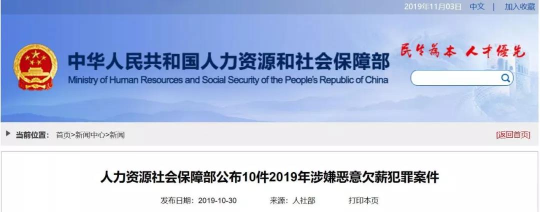10月30日,人力资源社会保障部公布10件2019年涉嫌恶意欠薪犯罪案件,其中有5件与建筑施工领域有关: