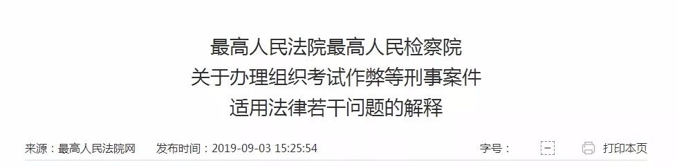 9月3日,最高人民法院、最高人民检察院联合发布《关于办理组织考试作弊等刑事案件适用法律若干问题的解释》。