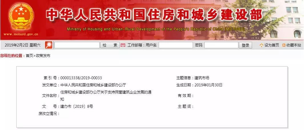在2019年1月住建部曾发布《住房和城乡建设部办公厅关于支持民营建筑企业发展的通知》: