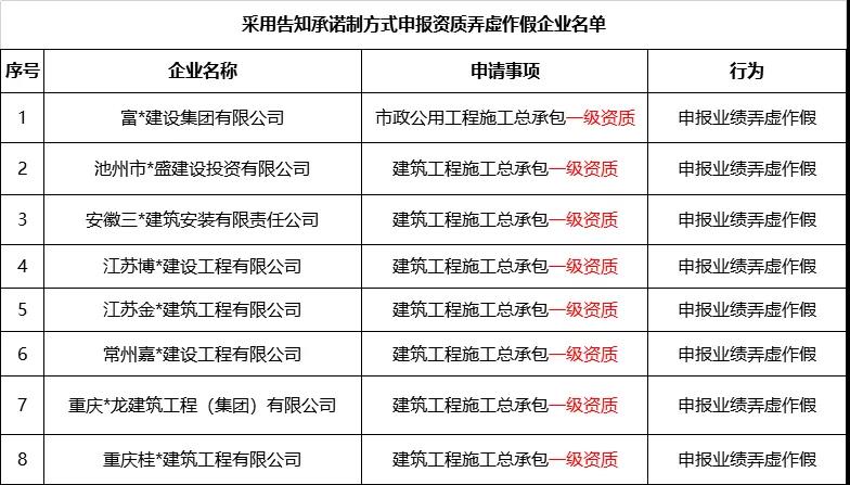 2、采用告知承诺制方式申报资质弄虚作假企业名单