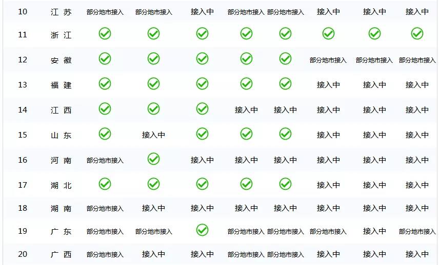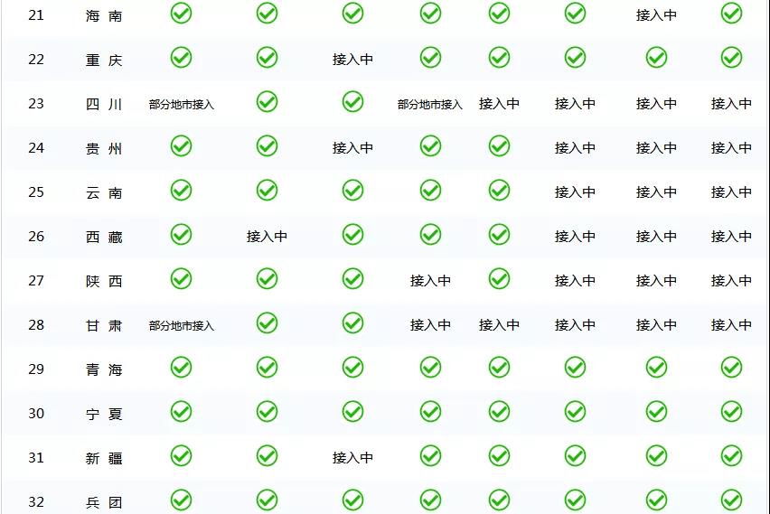 可以看出,大部分省份已经完成了接入,其他没有完成的省份也在逐步完善接入中。