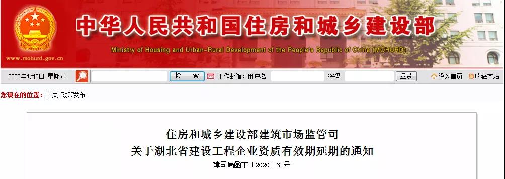 住建部:湖北省即将到期的施工/监理资质,延期到10月31日!