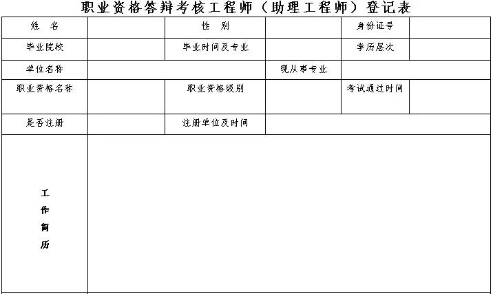 1. 职业资格答辩考核工程师(助理工程师)登记表;