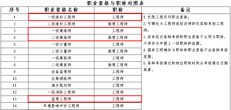 2. 职业资格与职称对照表