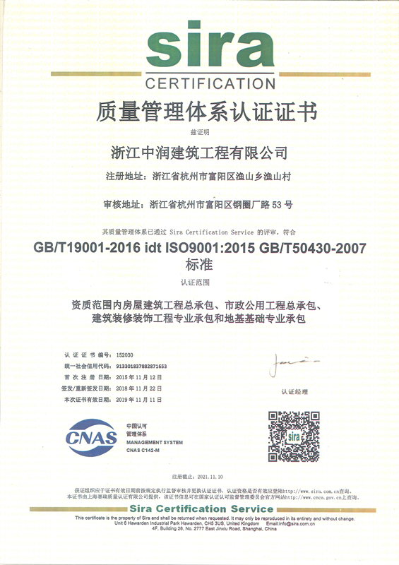 质量管理体系认证证书